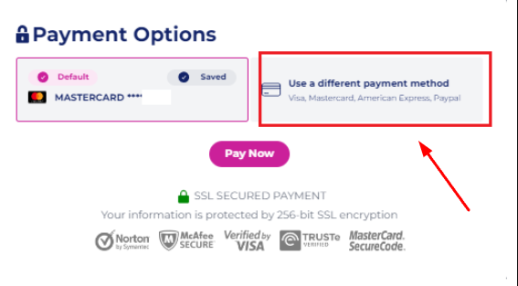 5.Choose "Use a different payment method" then click or tap "pay now".