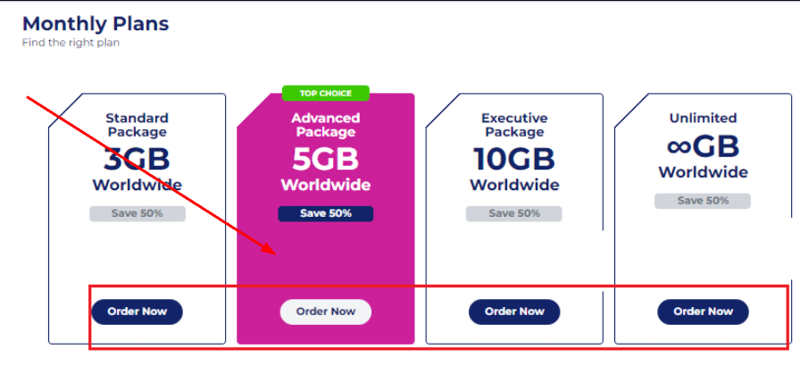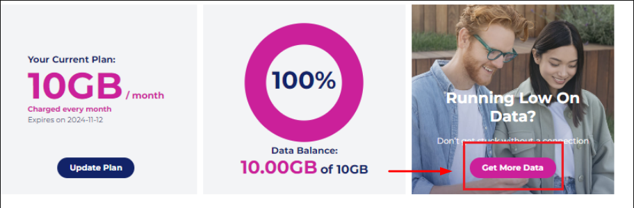 4. Choose a subscription. Note: If you update your subscription, the previous data plan will be automatically cancelled and the new subscription will take effect immediately.