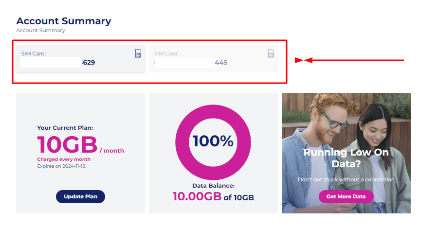 To change your payment method, you need to go to the Viaota dashboard at https://my.viaota.com/. You must choose a new subscription to enable the option "Use a different payment method." If you update your card and choose the same data plan, your previous data plan will be automatically deactivated, and your new data plan with your updated card will take effect immediately.