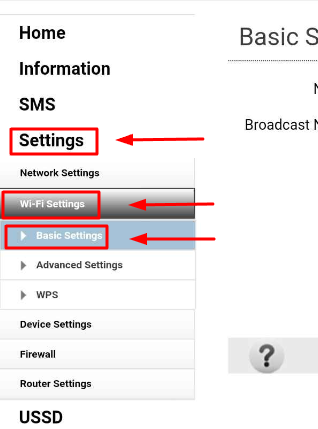 4. After logging in, click on "Settings" followed by "Wi-Fi settings" and then "Basic settings".