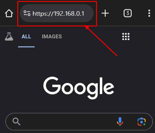Enter the Ryoko IP address 192.168.0.1 in the address bar/URL and press Enter.