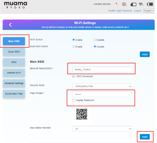 Once you are on the WiFi Settings page, locate the "Main SSID" tab in the top right corner. From there, you can change your network name in the "Network name" (SSID) and your password in the "Pass Phrase." Simply delete the current information in the box and enter your preferred SSID or network name and password. Please ensure that the password you chose should be at least 8 characters long, a mix of letters and numbers, and is case sensitive.